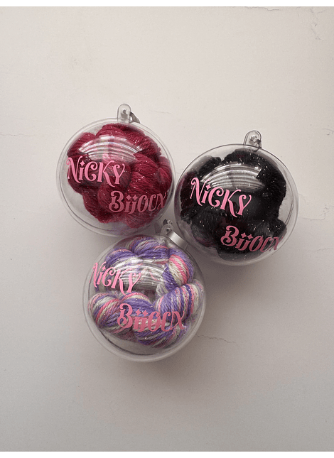 🎄 3 Esferas navideñas con mini madejas de 20grs. c/u.