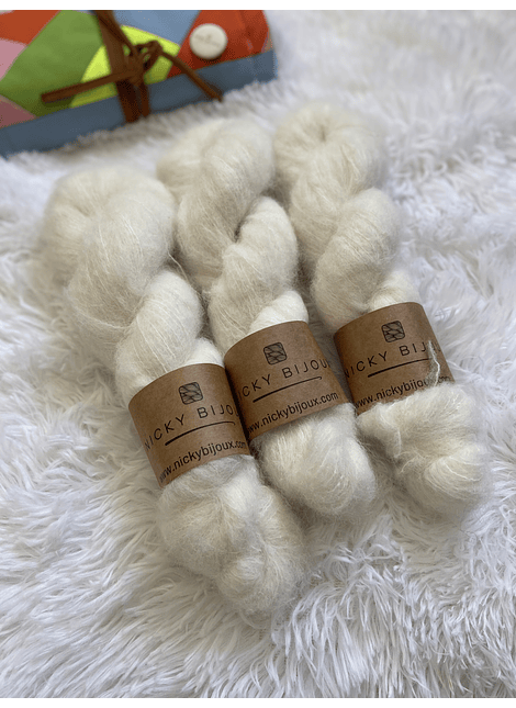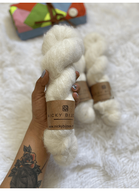 Esta deliciosa fibra es 100% natural y se compone de Alpaca Superfine Perchada, que da la sensación de pelo largo como si fuera Mohair. Se destaca por su extrema suavidad, ligereza y calidez al momento de tejerla. Su grosor es Encaje en madejas de 270 metros.
