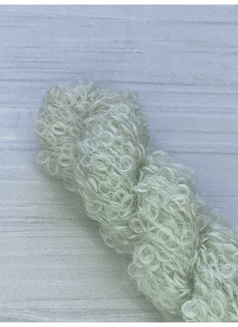 - Mini madeja en Boucle Alpaca Suri.(74% Suri, 22%Merino, 4%Poliamida)