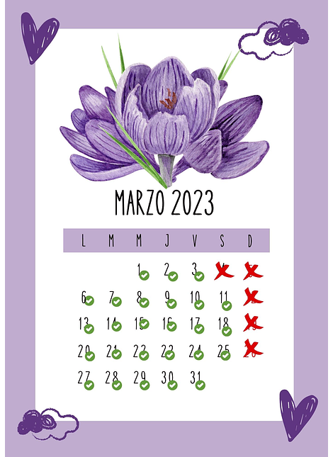 Los días disponibles se encuentran en la imágen del calendario de Marzo 2023 para que elijas el día, si no estás segur@ del día o lo quieres para regalo, dejame una anotación para poder coordinar a través del whatsapp.