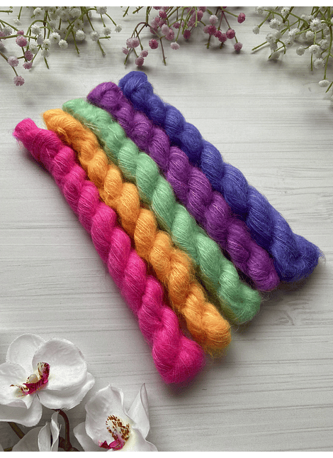 - 5 mini madejas de Baby Mohair Seda (70% Mohair, 30% Seda)